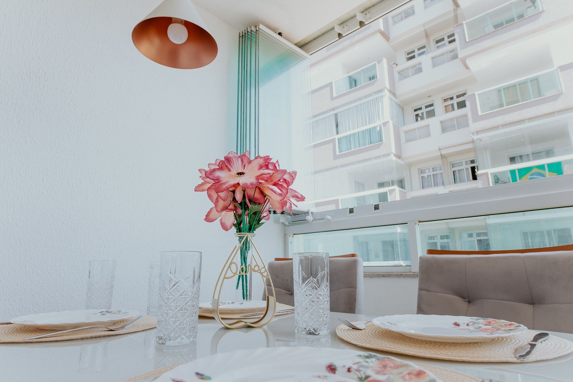 A cozinha é moderna e está completamente equipada com geladeira, fogão, micro-ondas, cafeteira e utensílios para preparar refeições com facilidade. Há também uma mesa de jantar na varanda com uma vista esplendida do mar para momentos de descontração. O banheiro é completo, com chuveiro de alta pressão aquecida a gás e produtos básicos de higiene.