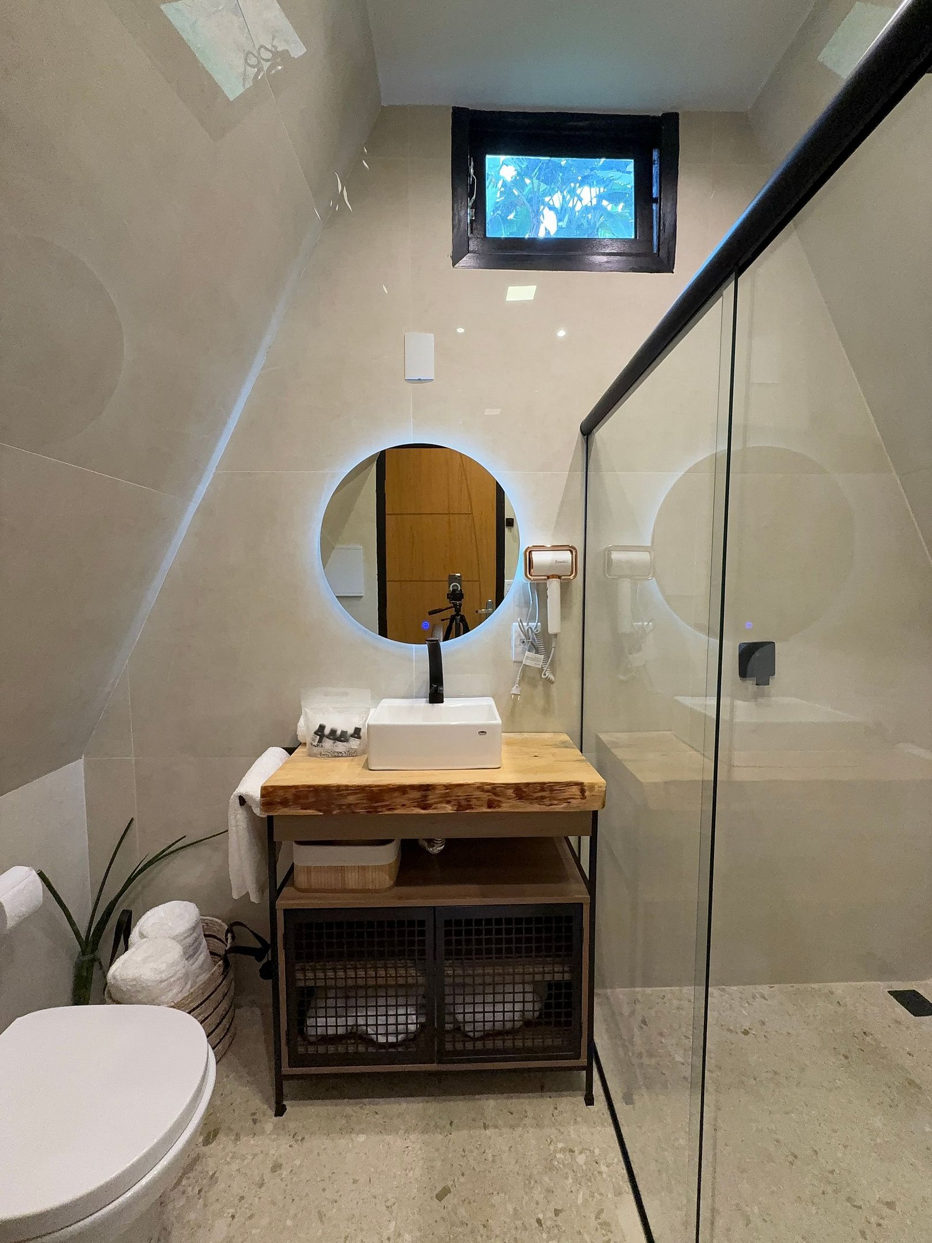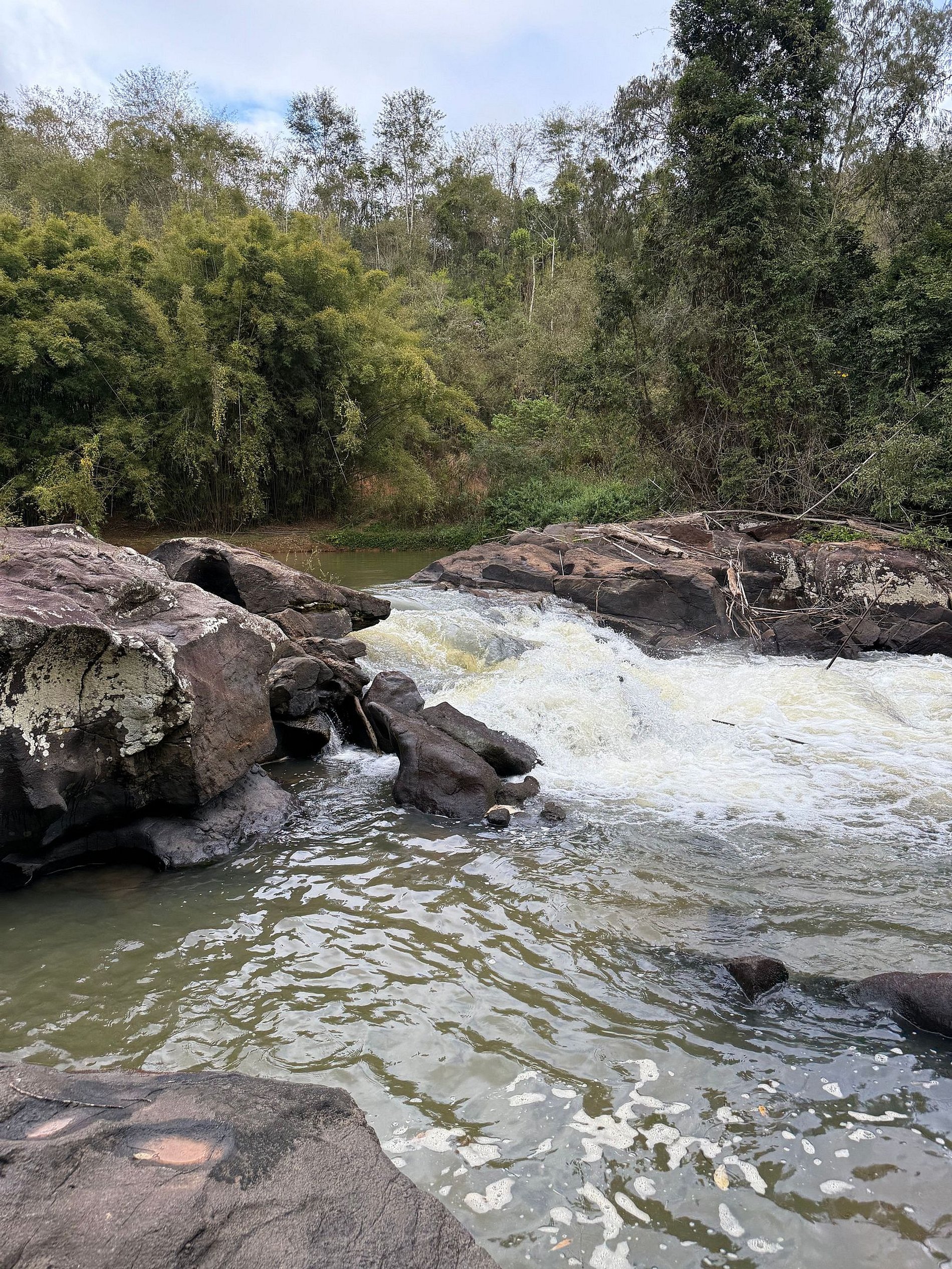 O chalé foi projetado para proporcionar uma experiência única de imersão na natureza, com total privacidade e um clima intimista perfeito para casais. O que o torna especial é sua localização privilegiada, às margens do Rio Jucu, onde o som da água e o verde ao redor criam uma atmosfera de paz e descanso.