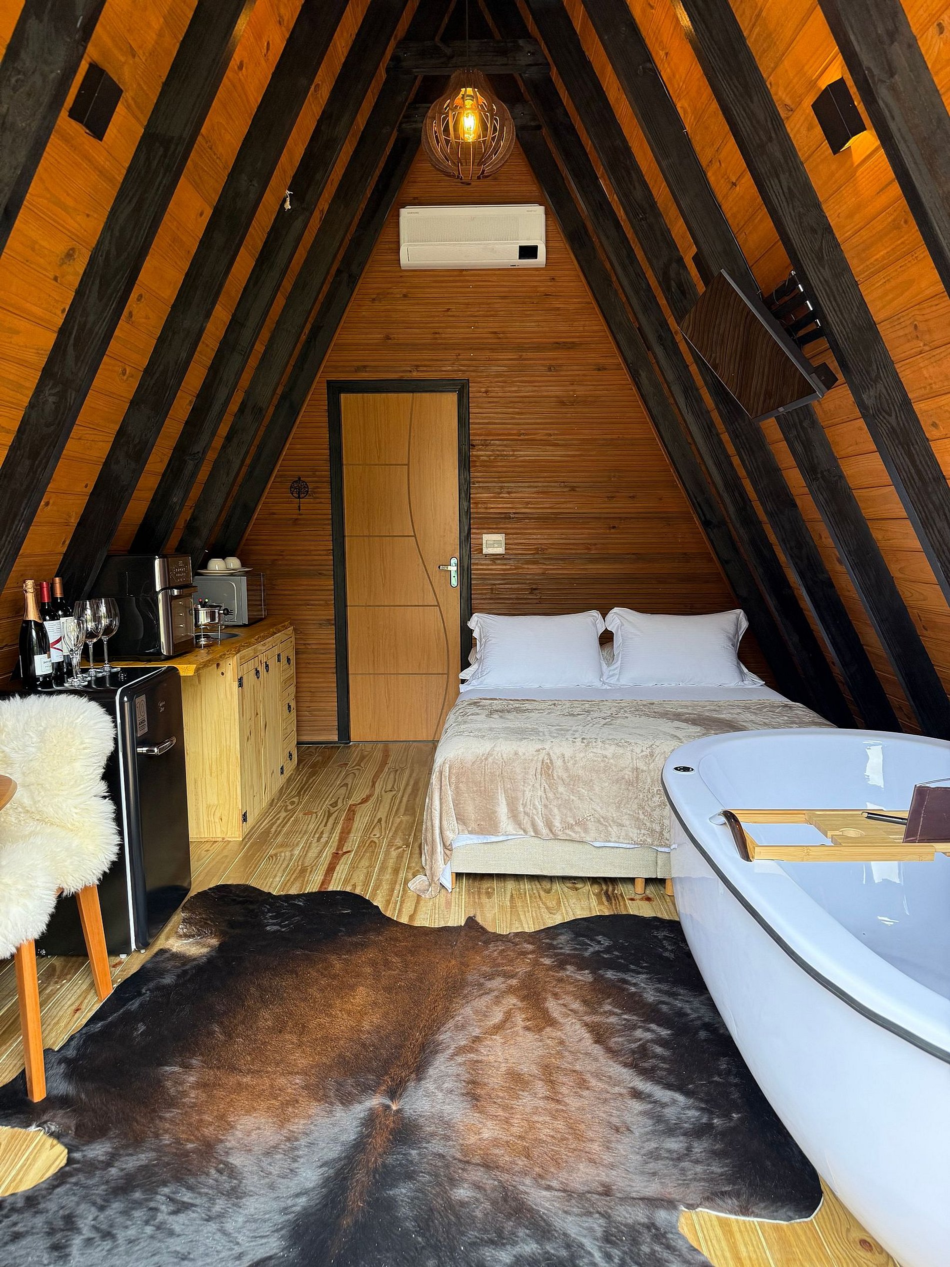 O ambiente foi pensado nos mínimos detalhes. A iluminação suave, a decoração em madeira e a vista verde criam um clima acolhedor e apaixonante. É um lugar que inspira calma, carinho e leveza, ideal para casais que desejam transformar dias comuns em lembranças únicas. Aqui, o tempo desacelera, o corpo descansa e a mente se entrega à tranquilidade da natureza.