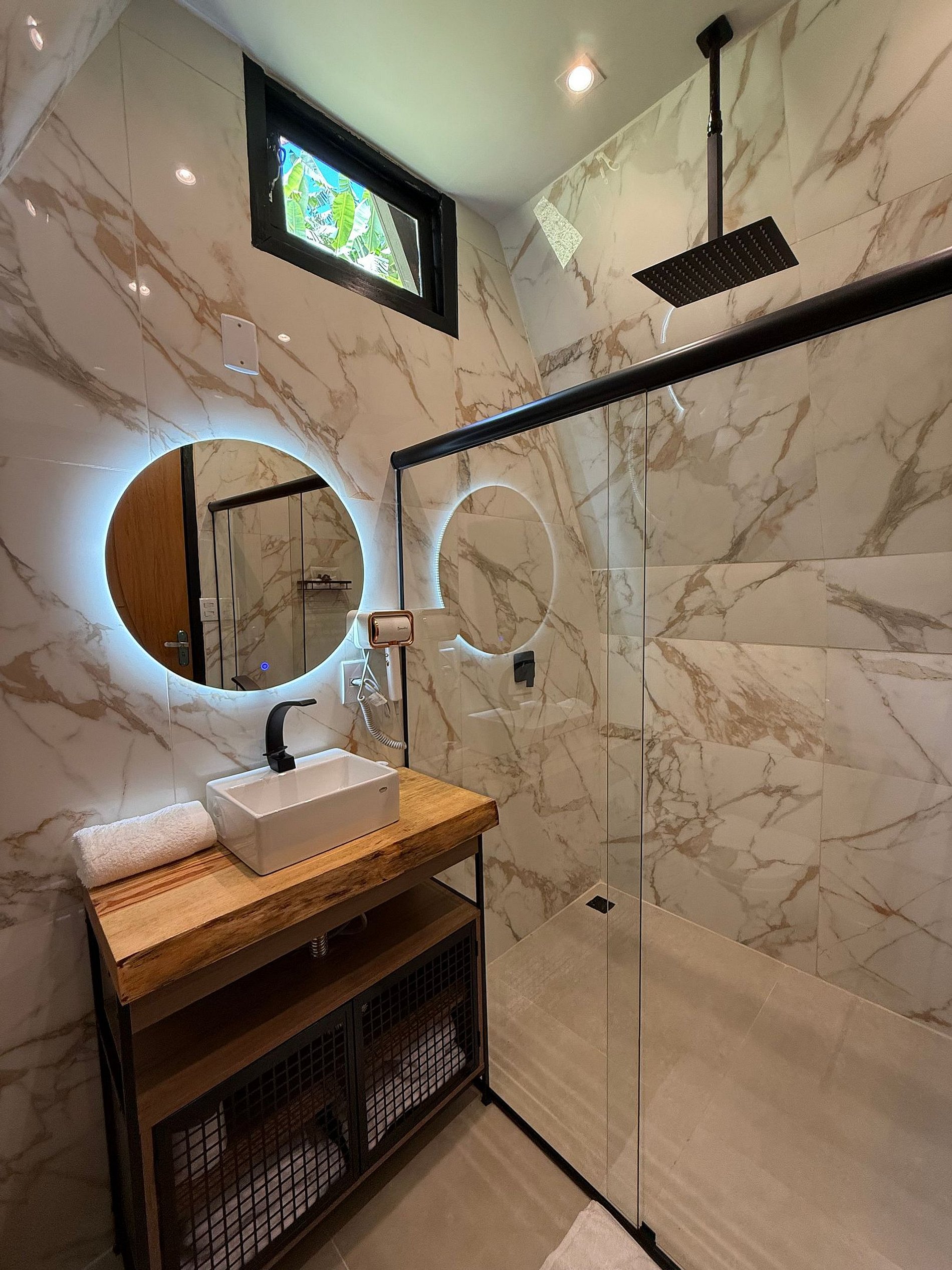 Este chalé foi projetado para casais que buscam privacidade e experiências intensas em meio à natureza. Localizado às margens do Rio Jucu, ele combina o conforto do interior com o charme rústico de um refúgio romântico. A jacuzzi privativa, posicionada de frente para o rio, é o ponto de encontro perfeito para relaxar, conversar e se reconectar.
