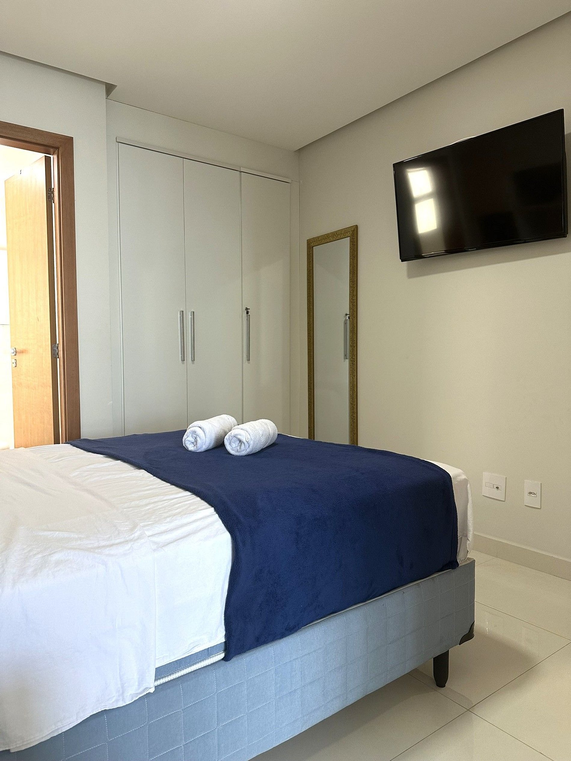 Nosso apartamento foi cuidadosamente montado para oferecer o máximo conforto e lazer. A cozinha está equipada com micro-ondas, fogão, geladeira, freezer, sanduicheira, torradeira, batedeira, espremedor de suco, mixer, talheres e outros utensílios. Além disso o espaço conta com WI-FI, ferro de passar, máquina de lavar roupa e incluímos roupa de cama e banho, entre outros itens essenciais. Você também terá à disposição duas vagas de garagem para facilitar sua estadia. Dois quartos contam com ar condicionado e no terceiro há um climatizador de chão.