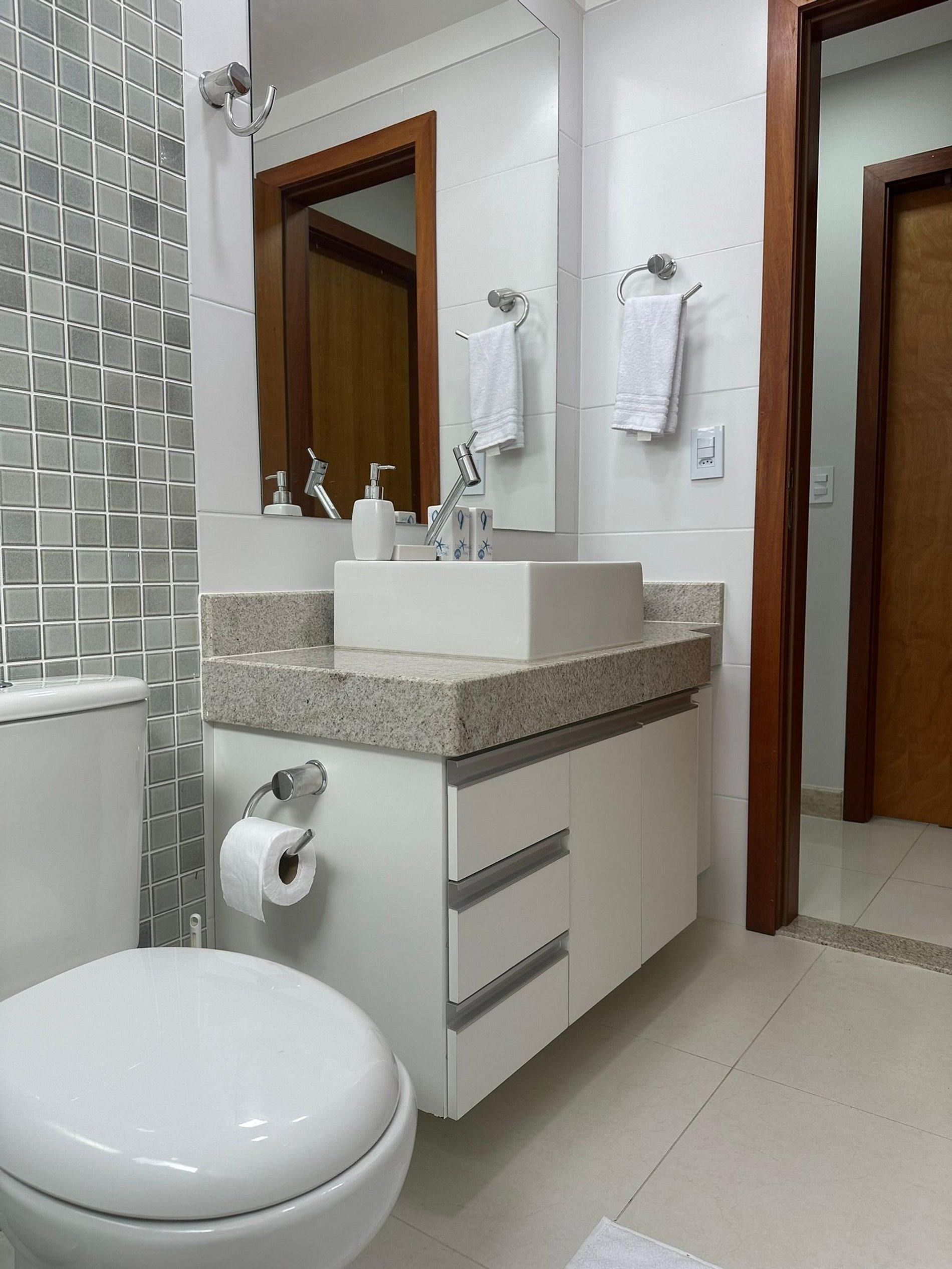 Ótimo apartamento, suíte muito boa, ar e TV muito bons, banheiro ótimo. Os outros 2 quartos também são bons, apenas 1 dos quartos tem um climatizador portátil que não refrigera como ar condicionado, o outro quarto tem um split muito bom, banheiro desses 2 quartos muito bom também. Cozinha completa, muito boa, sala de estar com TV, muito boa, e a sala de jantar integrada na sacada é ótima e tem uma vista sensacional...