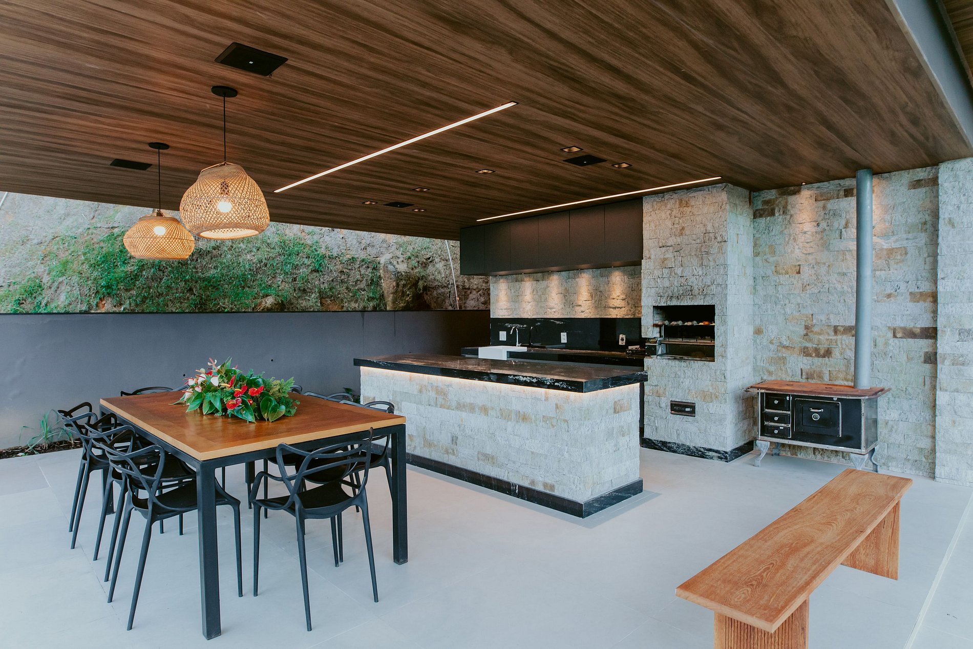 A Nossa área de lazer é externa a casa, descubra um espaço de lazer privativo com churrasqueira, fogão a lenha, cervejeira, bancada completa, perfeito para relaxar ou entreter com a família e amigos. Com Wi-Fi de alta velocidade e outras comodidades, este é o refúgio perfeito para sua próxima estadia. Os 04 quartos contam com ar condicionado.