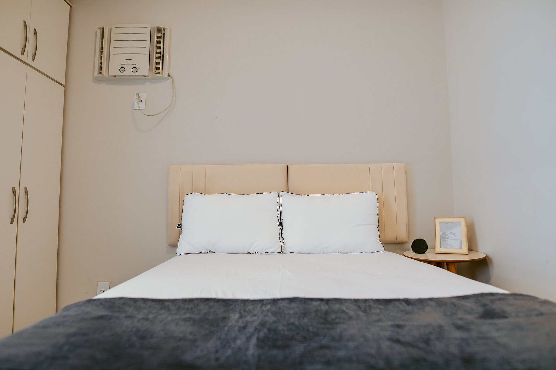 O quarto é confortável e conta com roupa de cama e banho inclusas, ar-condicionado, TV, armário e ferro de passar. A sala é super aconchegante, ideal tanto para relaxar quanto para trabalhar.