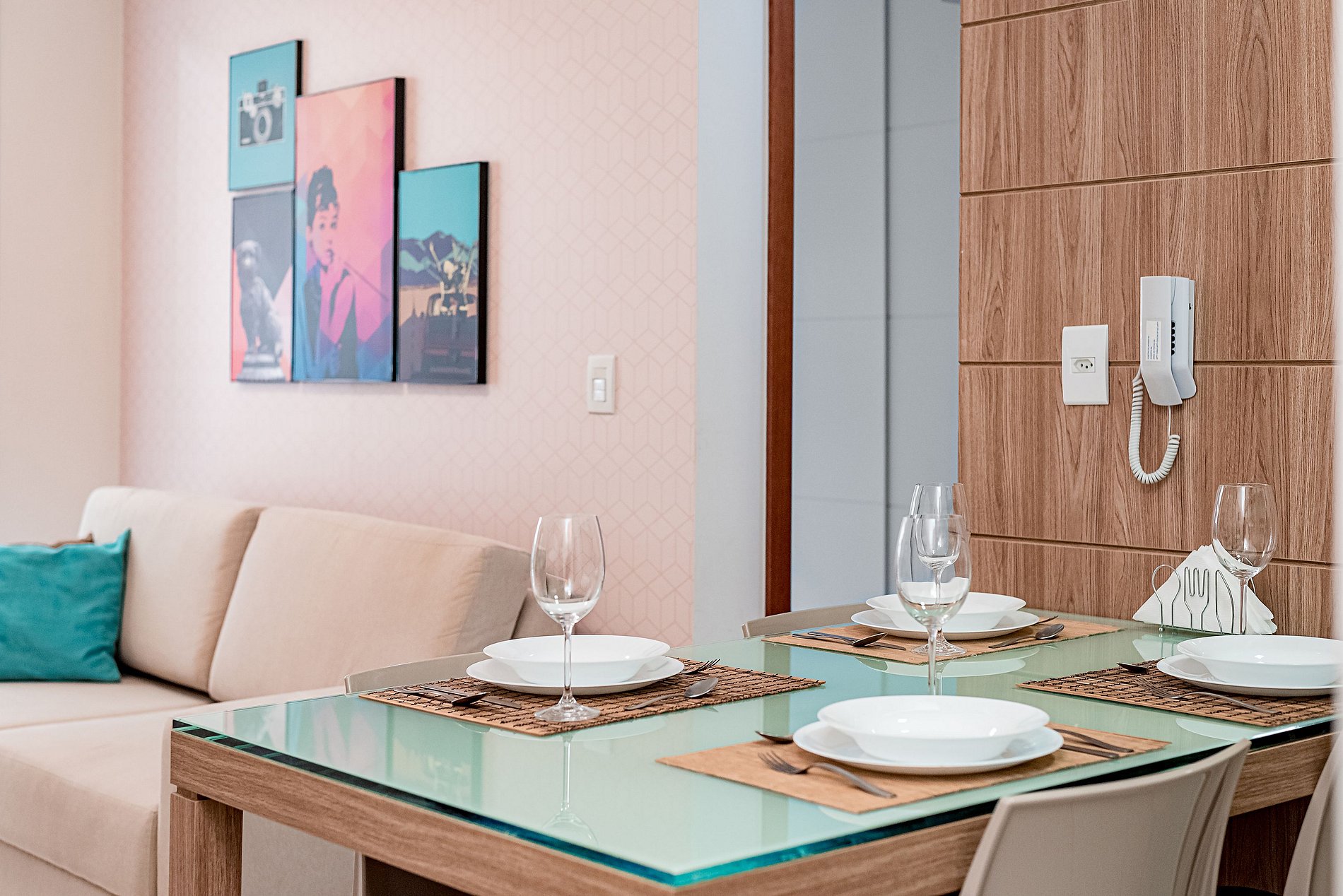 O apartamento está localizado no 3º andar e é bastante iluminado e arejado. O apartamento passou por algumas adequações com o objetivo de ter tudo para proporcionar uma experiência de estadia incrível, desde um excelente enxoval até os mínimos detalhes da decoração. Buscamos oferecer a experiência de um hotel, sem perder a independência de uma locação por temporada. Há também um sofá na sala onde um 3º hóspede poderá dormir.