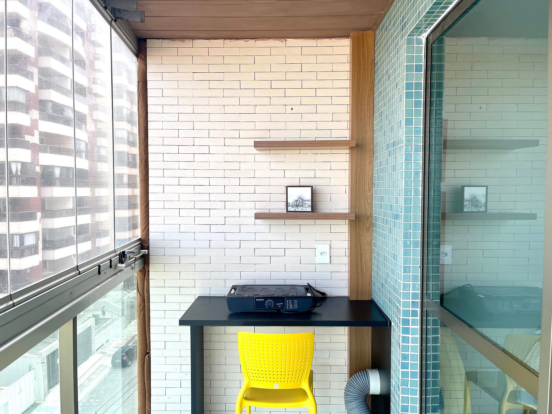 Acho que a unica coisa que não gostei foram as janelas, que estão um pouco dificeis de abrir, e como são inteiras de vidro ficavamos com medo de tentar mexer nelas.