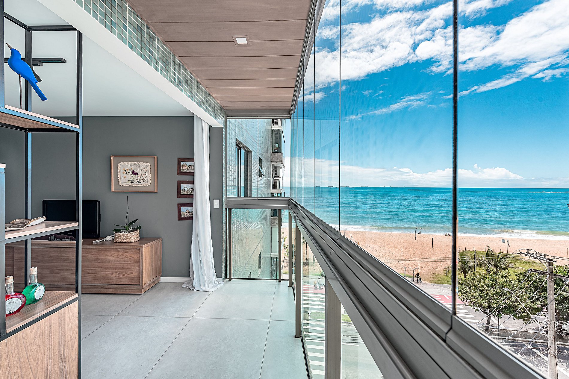 Vista maravilhosa, e uma grande surpresa foi que a cortina de vidro abafava qualquer som externo.