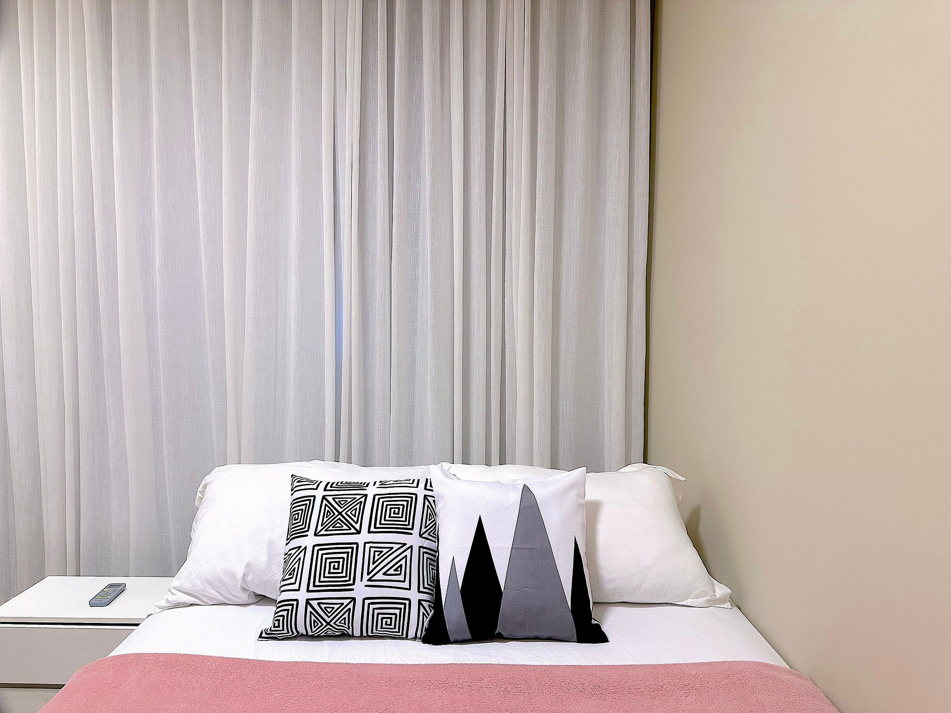O espaço possui dois quartos bem iluminados e equipados: o quarto principal conta com uma cama queen-size e o segundo quarto dispõe de uma cama de casal, ambos com roupas de cama de alta qualidade e armários espaçosos para maior praticidade. A sala de estar é convidativa, equipada com sofá retrátil confortável, televisão com streaming e ar-condicionado para garantir o bem-estar dos hóspedes.