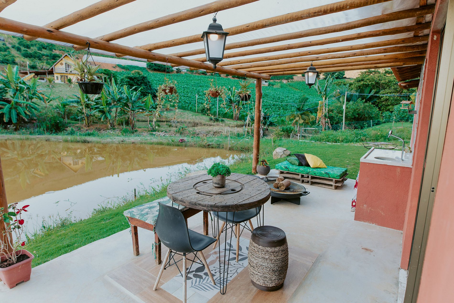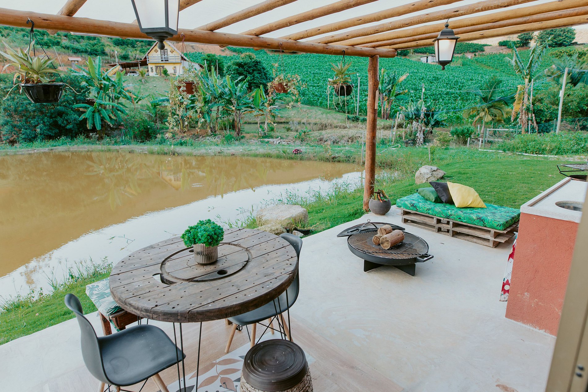 Na área externa, aproveite a varanda com vista para o lago e as plantações, além de um espaço perfeito para relaxar com fogareiro, churrasqueira, mesa e cadeiras. Um refúgio ideal para quem busca tranquilidade, contato com a natureza e momentos inesquecíveis!