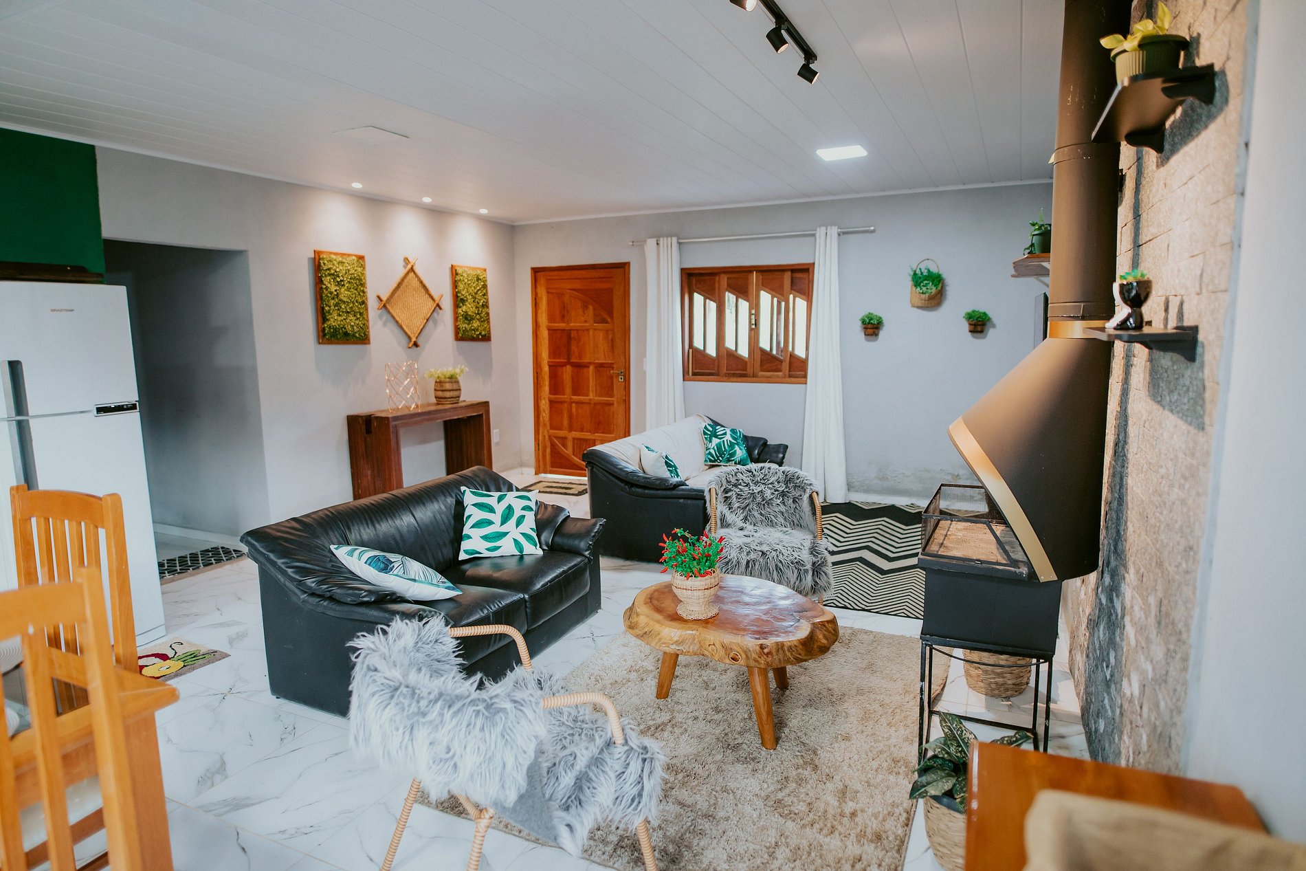 A casa acomoda até 8 hóspedes, com 3 quartos (1 suíte) e um colchão de casal extra para acomodar 2 pessoas adicionais. Roupas de cama e banho estão inclusas. A cozinha completa e integrada possui geladeira, fogão, forno, liquidificador, talheres, pratos, panelas e muito mais. A sala é super aconchegante, equipada com lareira, TV Smart e Wi-Fi para o seu conforto.