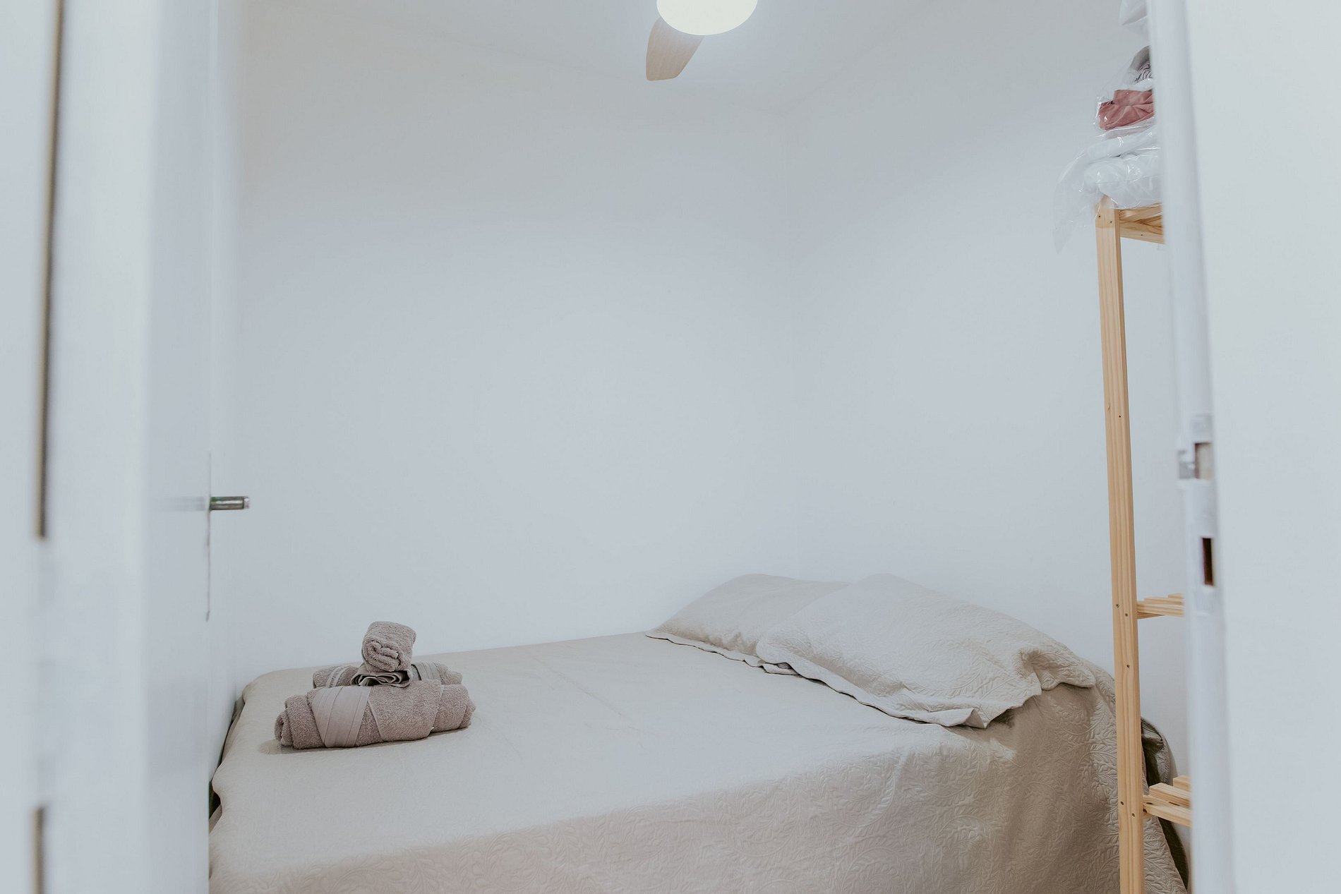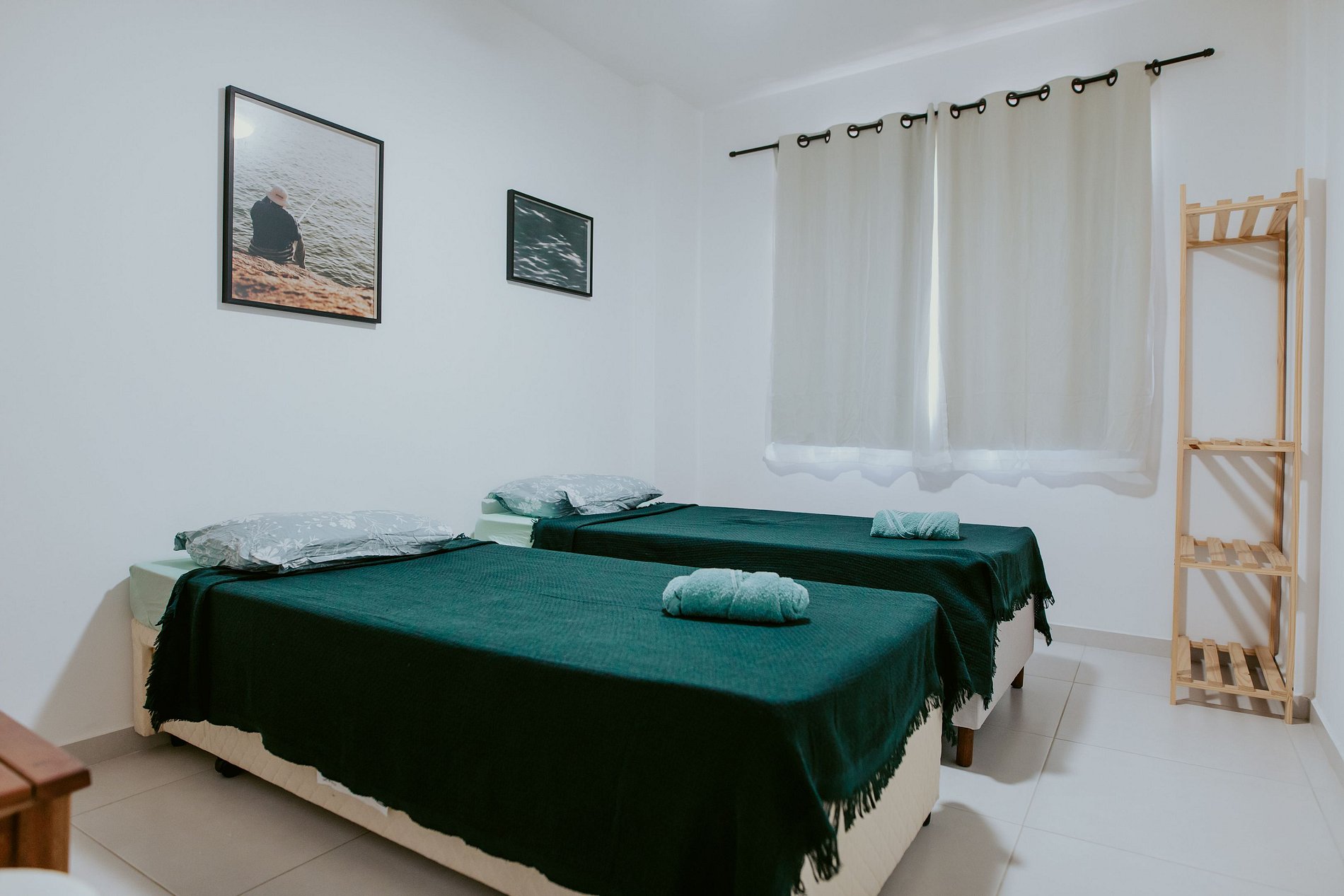 O quarto possui ventilador e roupas de cama e banho inclusas para sua conveniência. Há ainda uma dependência com cama de casal onde o terceiro ou quarto hóspede podem se acomodar.