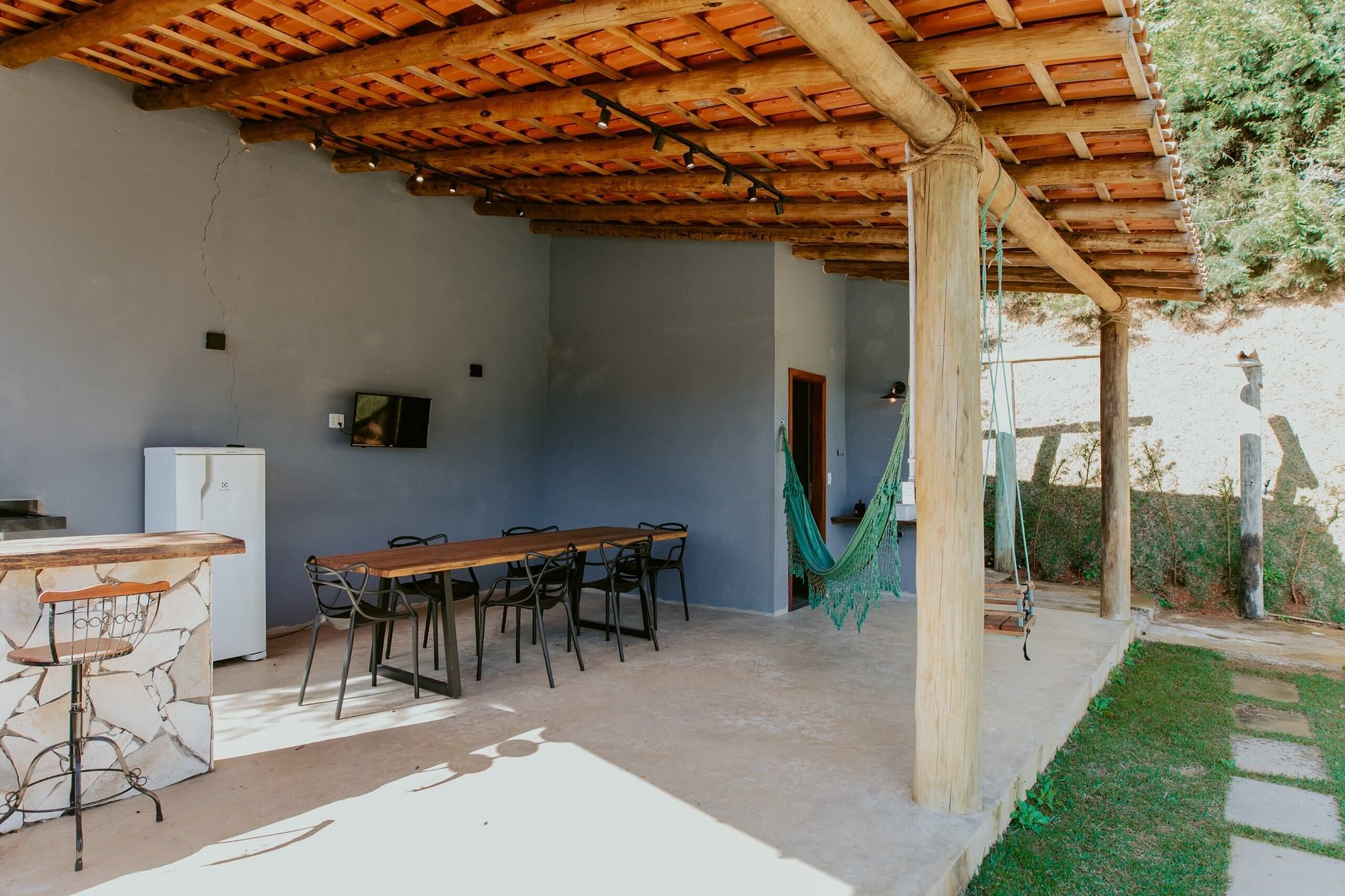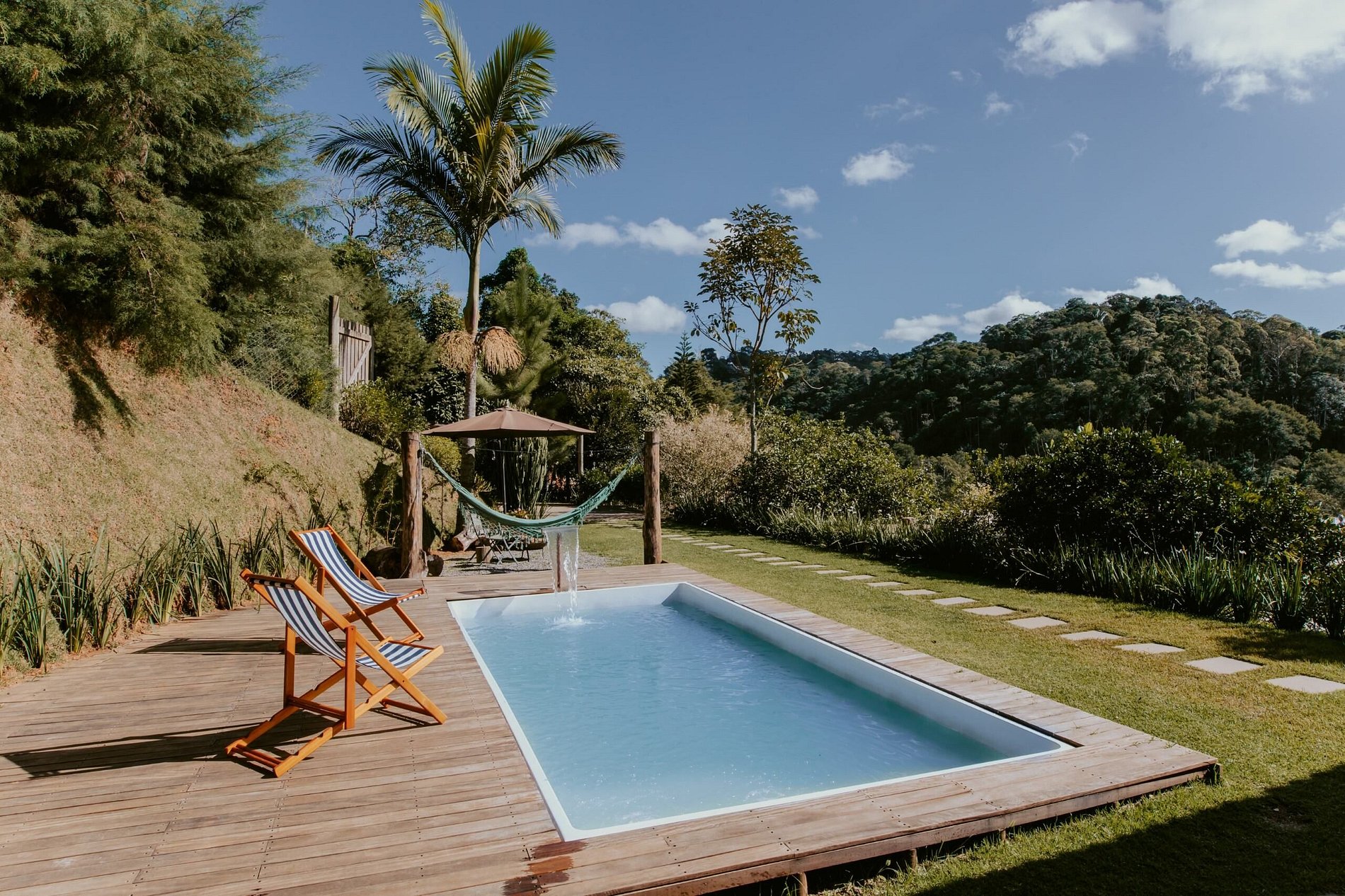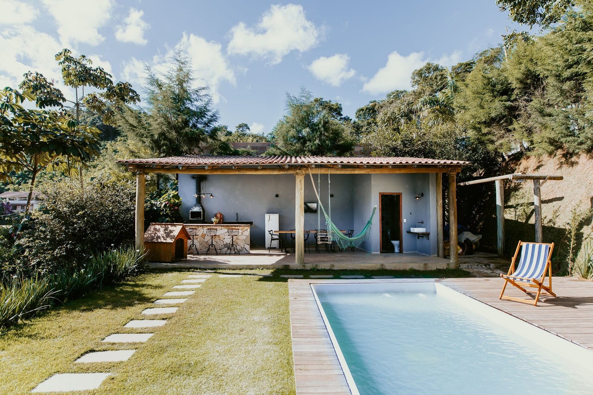 Viva dias inesquecíveis em um refúgio charmoso e completo em Domingos Martins, a apenas 15 min da Rua do Lazer! Com 2 suítes, 1 quarto de solteiro, cozinha completa com AirFryer, micro-ondas e lava-louças, piscina privativa, área gourmet com churrasqueira, lareira externa, rede e espreguiçadeiras, você terá conforto, lazer e tranquilidade em meio à natureza. Cercada por verde e com vista incrível para as montanhas, é ideal para casais, famílias e quem busca descanso com privacidade total.