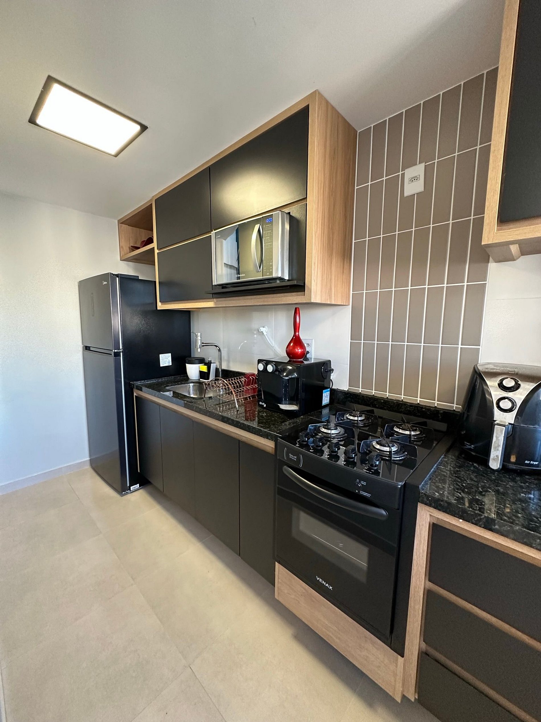 Foi uma hospedagem como era esperado, com muito conforto. O apartamento é muito bom, condiz com o divulgado. Logo ao entrar sentimos o cuidado ao nos receber, ambiente cheiroso, toalhas macias e felpudas, lençóis de ótima qualidade, limpeza primorosa, cozinha equipada com eletrodomésticos essenciais, ressalvando que se forem cozinhar, as panelas podem ser insuficientes. Senti falta de potes para armazenar pequenas quantidades de comida. Para famílias com crianças pequenas não indico, pois as vidraças não tem proteção. Um ponto a ser observado é que o blackout das cortinas não impede a claridade extrema logo ao nascer do sol. A jacuzzi é grande e muito limpa. A área superior poderia ser melhorada, colocando cadeiras de praia para as pessoas que optassem por permanecerem naquele espaço, tomando sol e apreciando um bom churrasco. Os funcionários do condomínio são educados e prestativos.